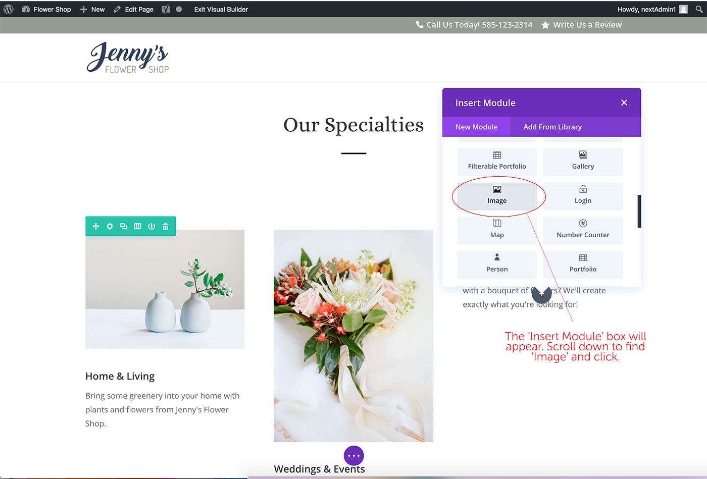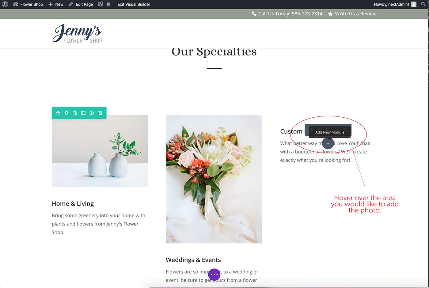 Step 3. Choose where you would like the new photo and click the plus sign labeled ‘Add New Module.’